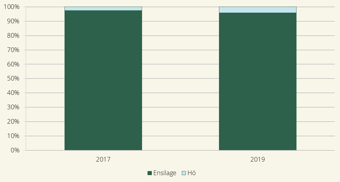 År 2017 bärgades 97 % av vallen som ensilage. För år 2019 var samma andel 96 %.