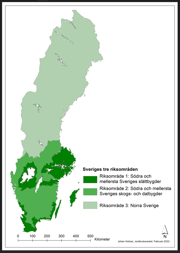 Stöd och ersättningar motsvarade 10 % av produktionsvärdet i riksområde 1, 12 % i riksområde 2 och 34 % i riksområde 3. I riksområde 3 används riktade nationella stöd för att jämna ut för inkomstskillnader som uppstår eftersom norra Sverige har sämre förutsättningar på grund av kärvare klimat och längre transportavstånd. Här ges även kompensationsstöd. Sammantaget innebar det att företag i riksområde 3 erhöll mer stöd och ersättningar i förhållande till produktionsvärdet, jämfört med i övriga Sverige.