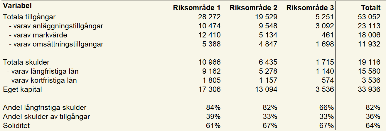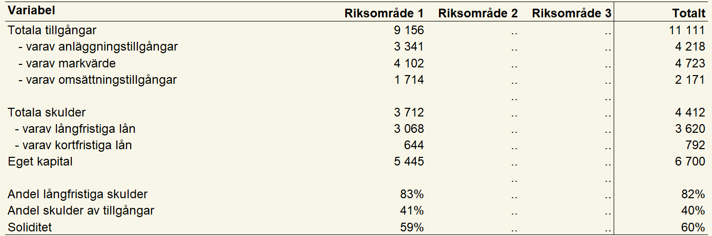 - Soliditet (det egna kapitalets andel av det totala kapitalet, vilket består av eget kapital och skulder).