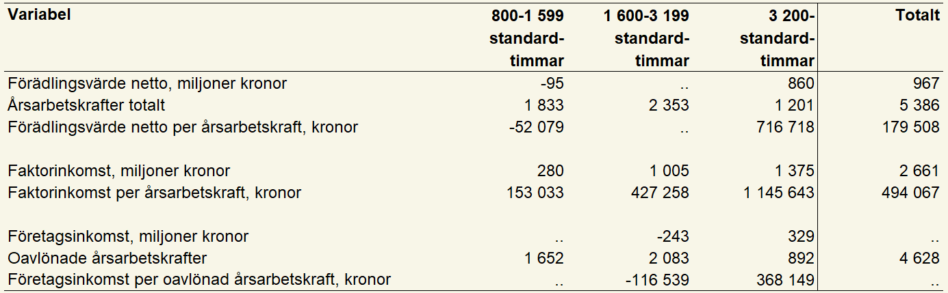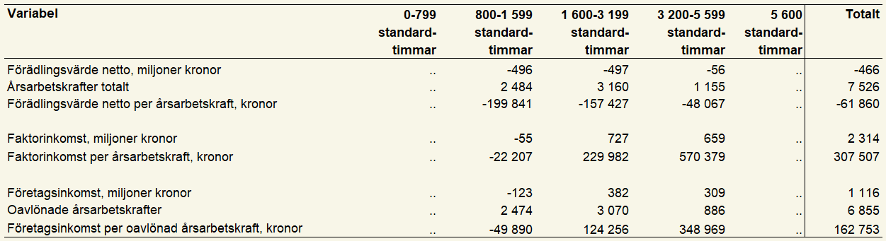 - Antal oavlönade årsarbetskrafter (avser företagares och anhörigas arbetade timmar).