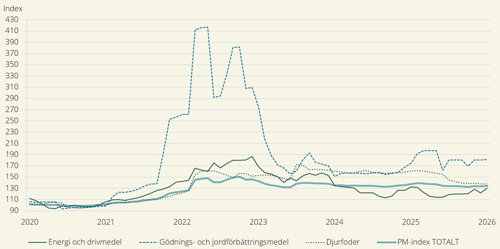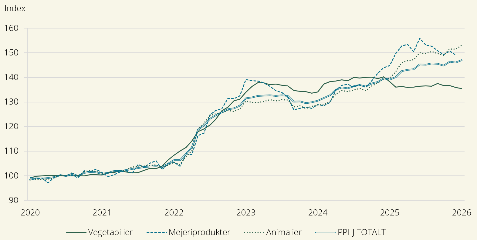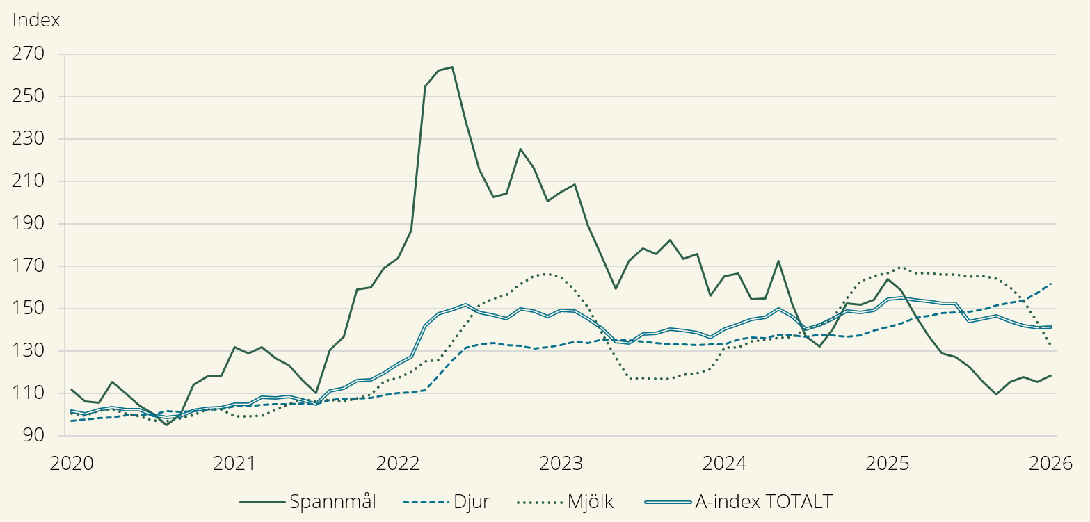 Anm. På grund av sekretess publicerar vi inte från och med januari 2026 index för Mejeriprodukter.